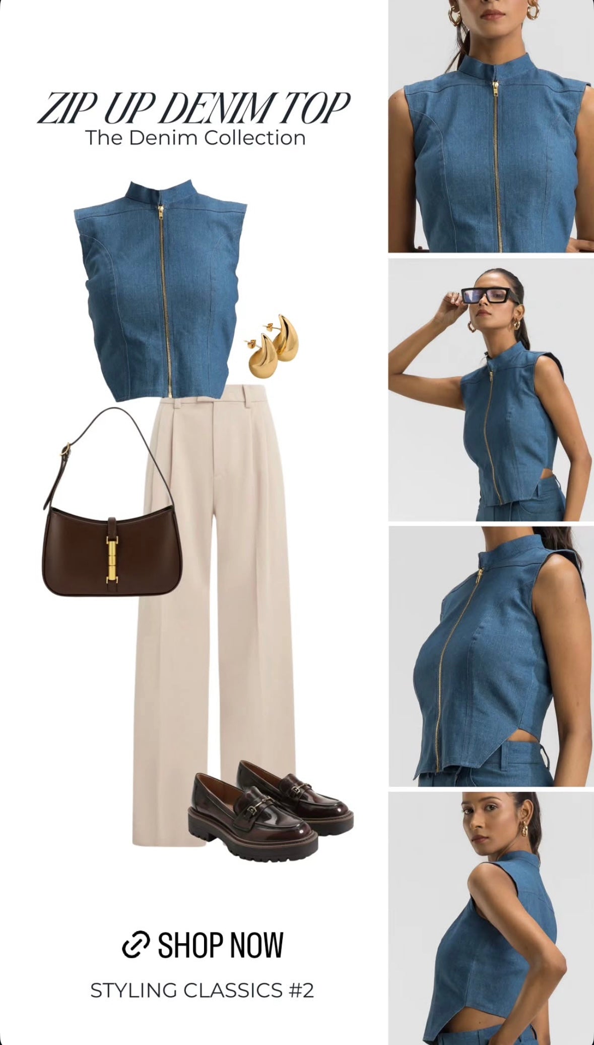 Zip Up Denim Top