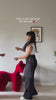 A chic two-tone waistcoat top with an overlapped front panel and sleek black button, paired with high-waisted black cotton pants featuring bold collar-inspired details in black and white.