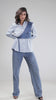 A breezy set crafted from lightweight fabric, featuring a shirt with half sleeves, a collar, and a front button-up closure adorned with white stitch lines. Paired with high-waisted shorts that include front pockets and a side zip with a top button fastening for practical style.