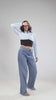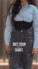 A collared cropped shirt with long sleeves, featuring a pinstriped body, a fitted contrast waist, and concealed button fastening at the front.