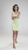 A perfect pastel green dress features a short length and a beautifully shaped cut detail at the front chest. It fits like a glove with the elastic at the back.