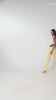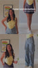 A reversible corset top featuring on one side and plain white cotton on the other, with a square neckline and a tie-up loop closure at the back Paired with High-waisted straight pants with two pleats on each side at the front, a V cut-out at the front waist, and a back zip fastening.